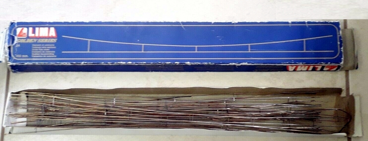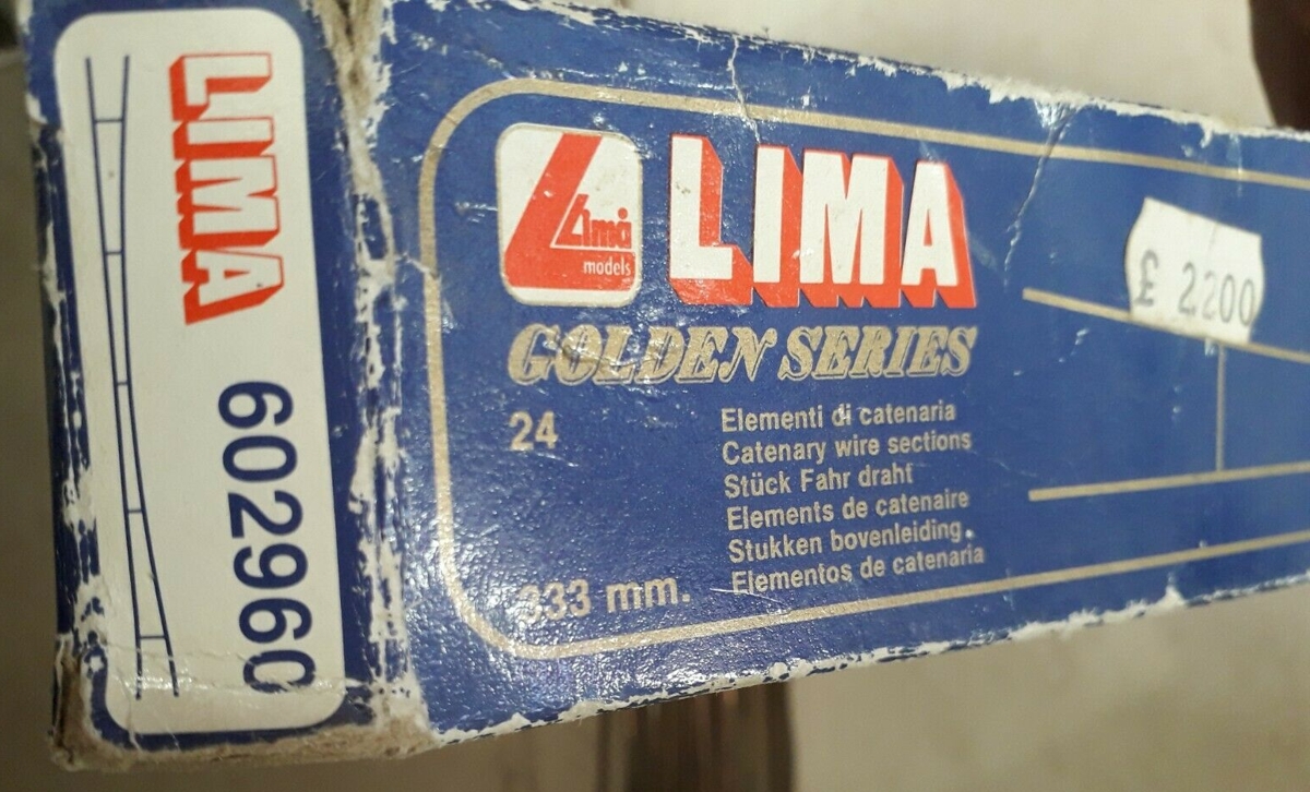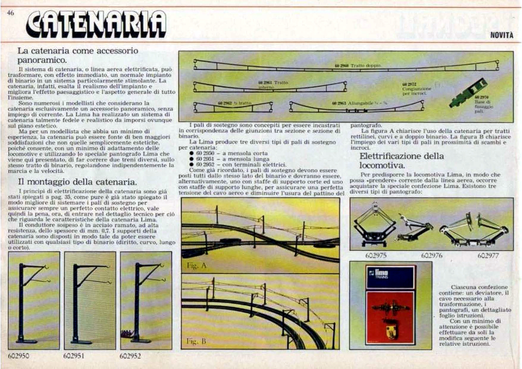 Il primo lancio della catenaria Lima, lo troviamo sul catalogo 1978/79 Per quanto ancora da definire, vengono proposti pali (poi modificati), linea aerea e pantografi effettivamente funzionanti per le locomotive Lima.
