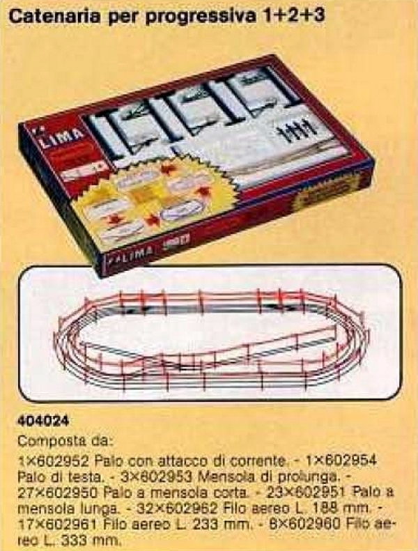 Nel 1980 la proposta Lima per pali (quattro tipi più una mensola di prolunga) e linea aerea (tre tipi), è ormai definita e resterà in catalogo fino al 1998. Da rilevare che la linea aerea "media" art. 602961 dal 1980 al 1984 è dichiarata di lunghezza 233mm e dal 1985 222mm, la "corta" art. 602962 dal 1980 al 1984 è 188mm e dal 1985 166,5mm, mentre la "lunga" art. 602960 resta sempre 333mm