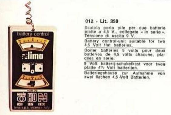 Col catalogo 1971 cambia tutto. Scompaiono i trasformatori "colorati" e il portapila giallo e tutto diventa di un elegante nero. Sugli alimentatori compaiono tutte e tre le scale prodotte da Lima (O, H0, N) ad indicare che possono comandare tutti i convogli indipendentemente dalla scala.