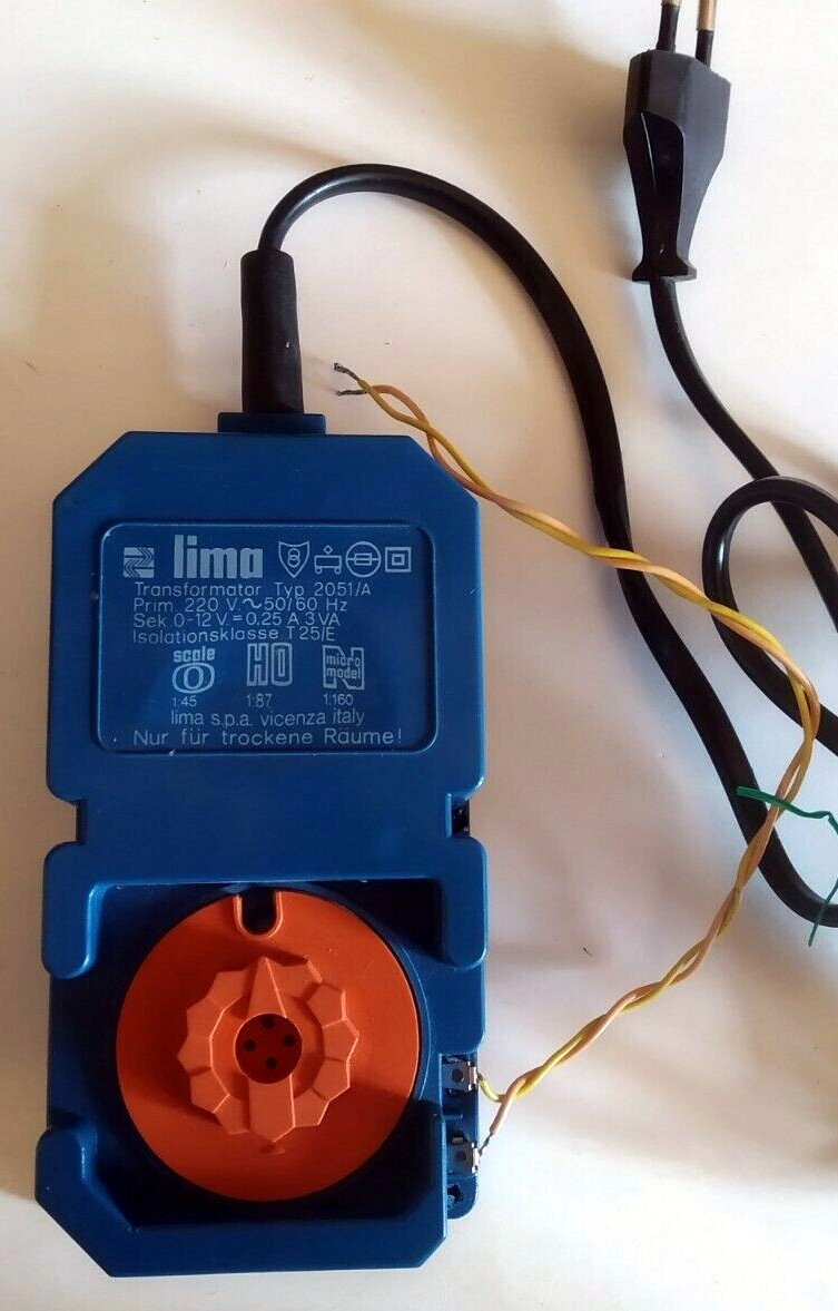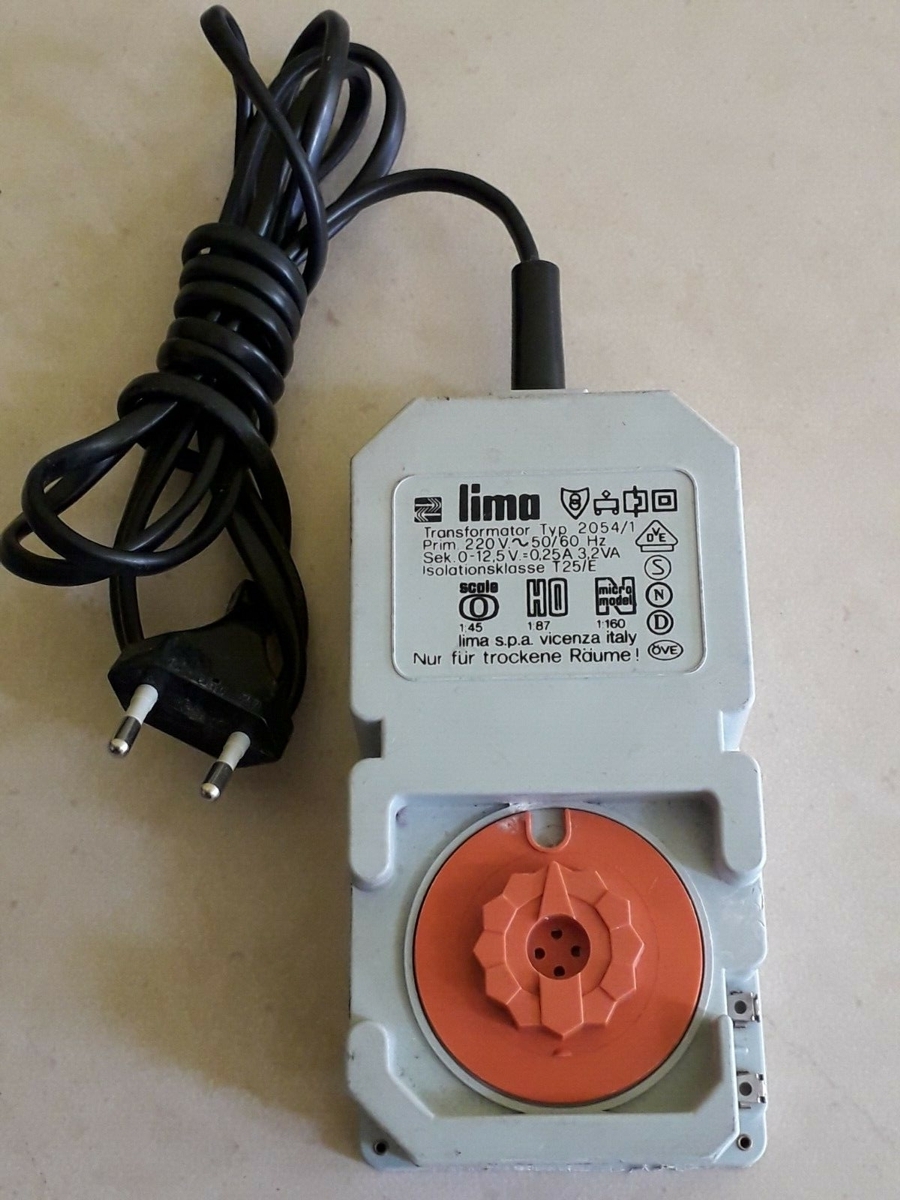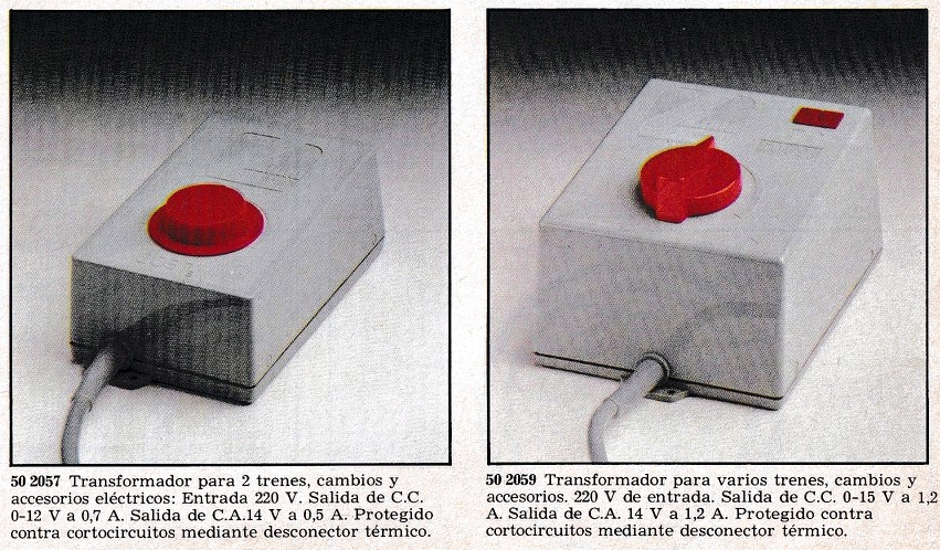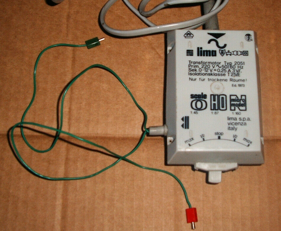 Trasformatore 50-2057 con uscita in CC e CA dal 1978 al 1981 Trasformatore 50-2059 con uscita in CC (per più treni) e CA dal 1978 al 1983 Dal catalogo 1979 con il nuovo logo Lima Models