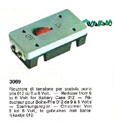 Nel catalogo del 1974 come unica novità troviamo un riduttore di tensione per portapile da 9V a 6V