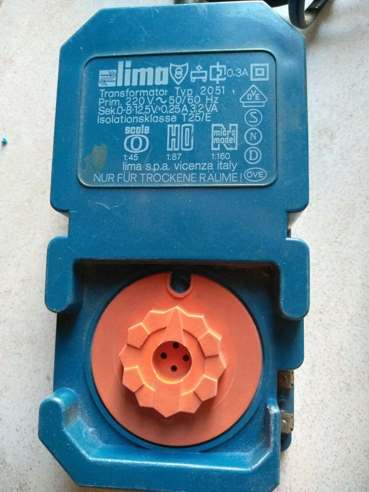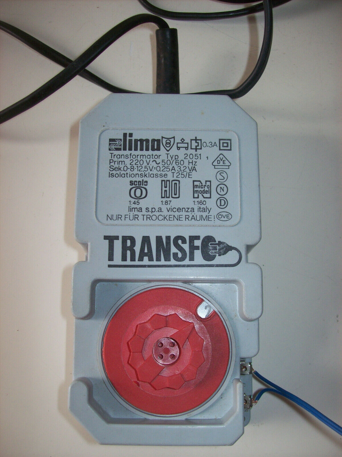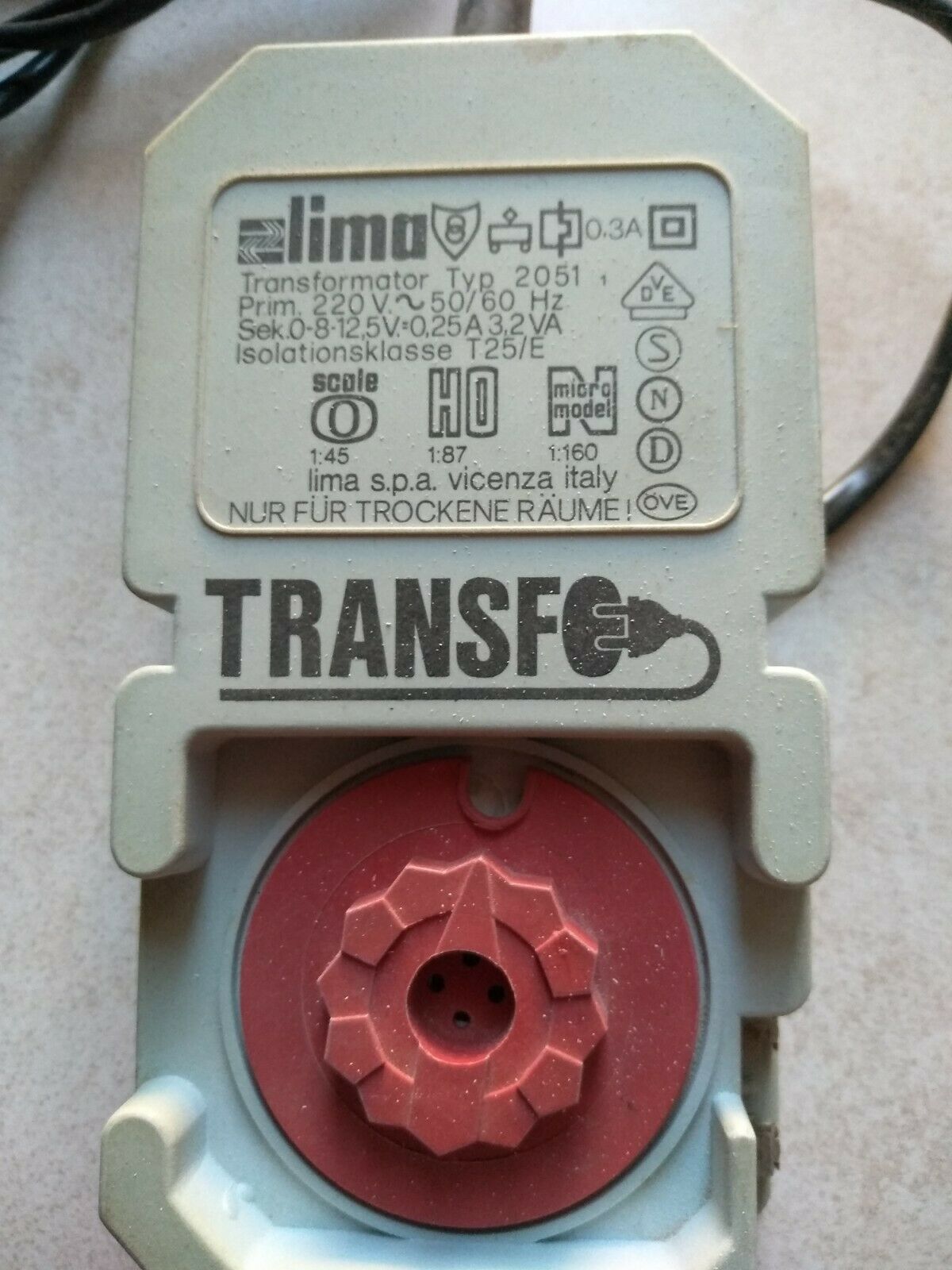 Trasformatore 50-2057 con uscita in CC e CA dal 1978 al 1981 Trasformatore 50-2059 con uscita in CC (per più treni) e CA dal 1978 al 1983 Dal catalogo 1978 con ancora il logo Lima vecchio (frecce sovrapposte)