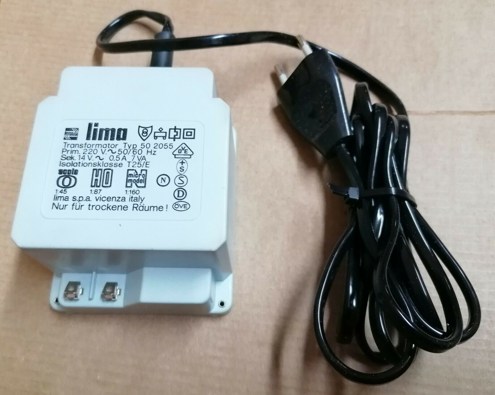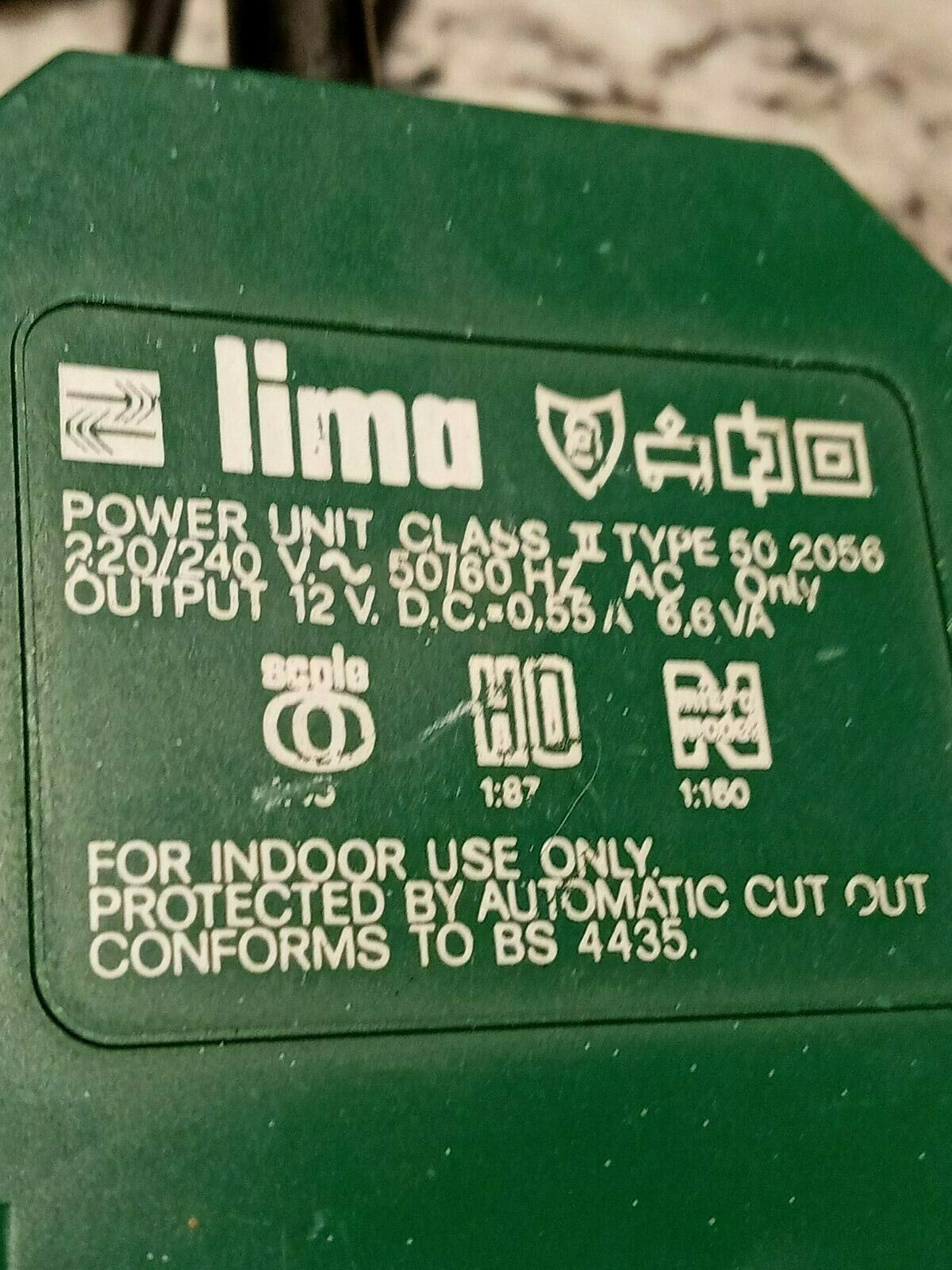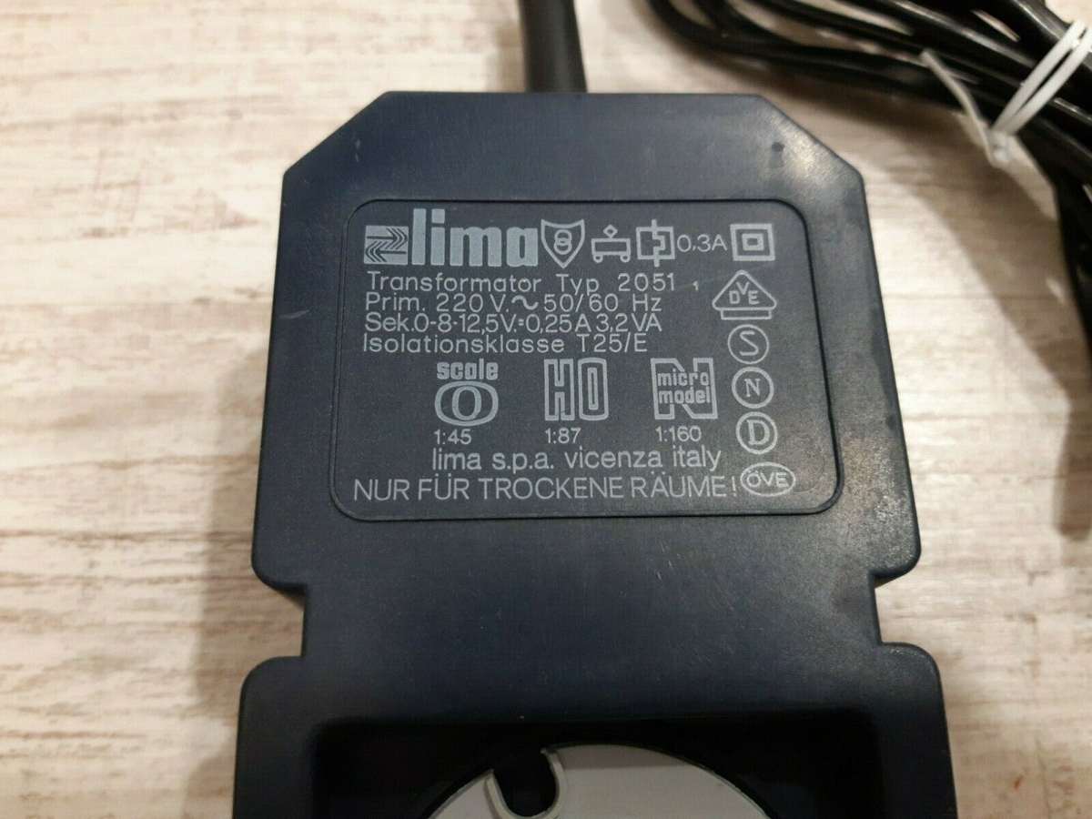 Trasformatore 50-2057 con uscita in CC e CA dal 1978 al 1981 Trasformatore 50-2059 con uscita in CC (per più treni) e CA dal 1978 al 1983 Dal catalogo 1978 con ancora il logo Lima vecchio (frecce sovrapposte)