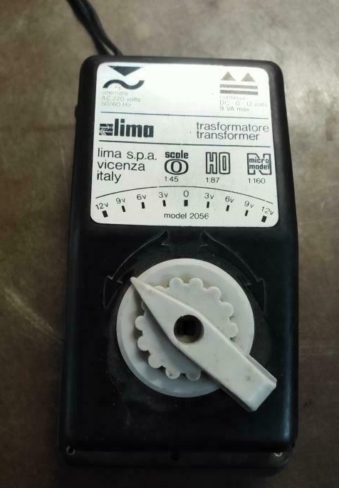 Trasformatore 2058-B (Buhler) per più treni, con uscita in CC e CA dal 1976 al 1979(?), con logo Lima Models