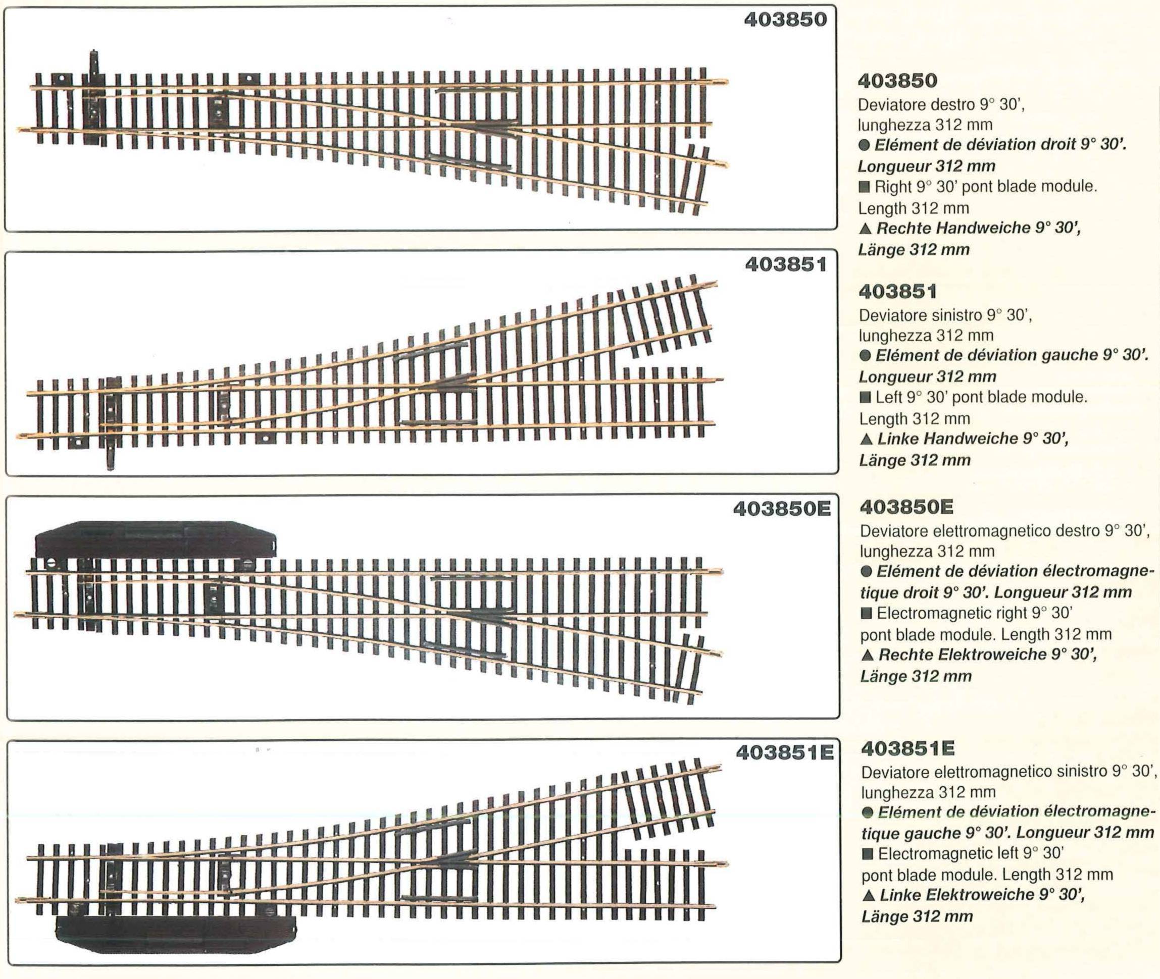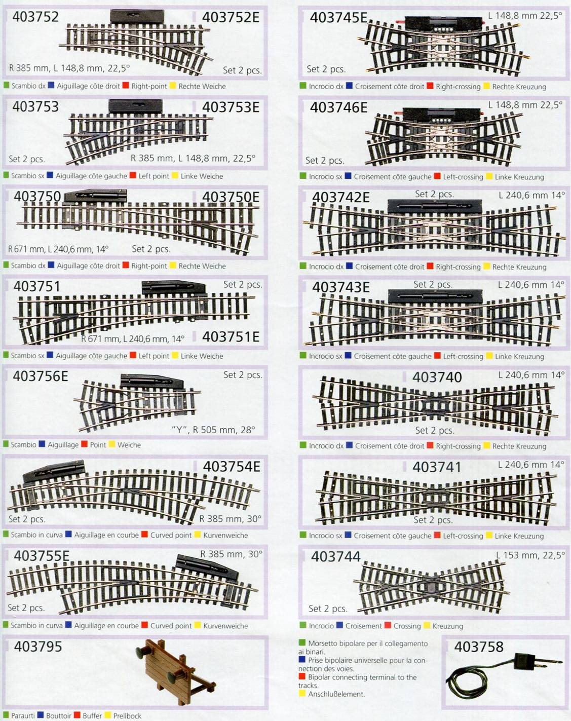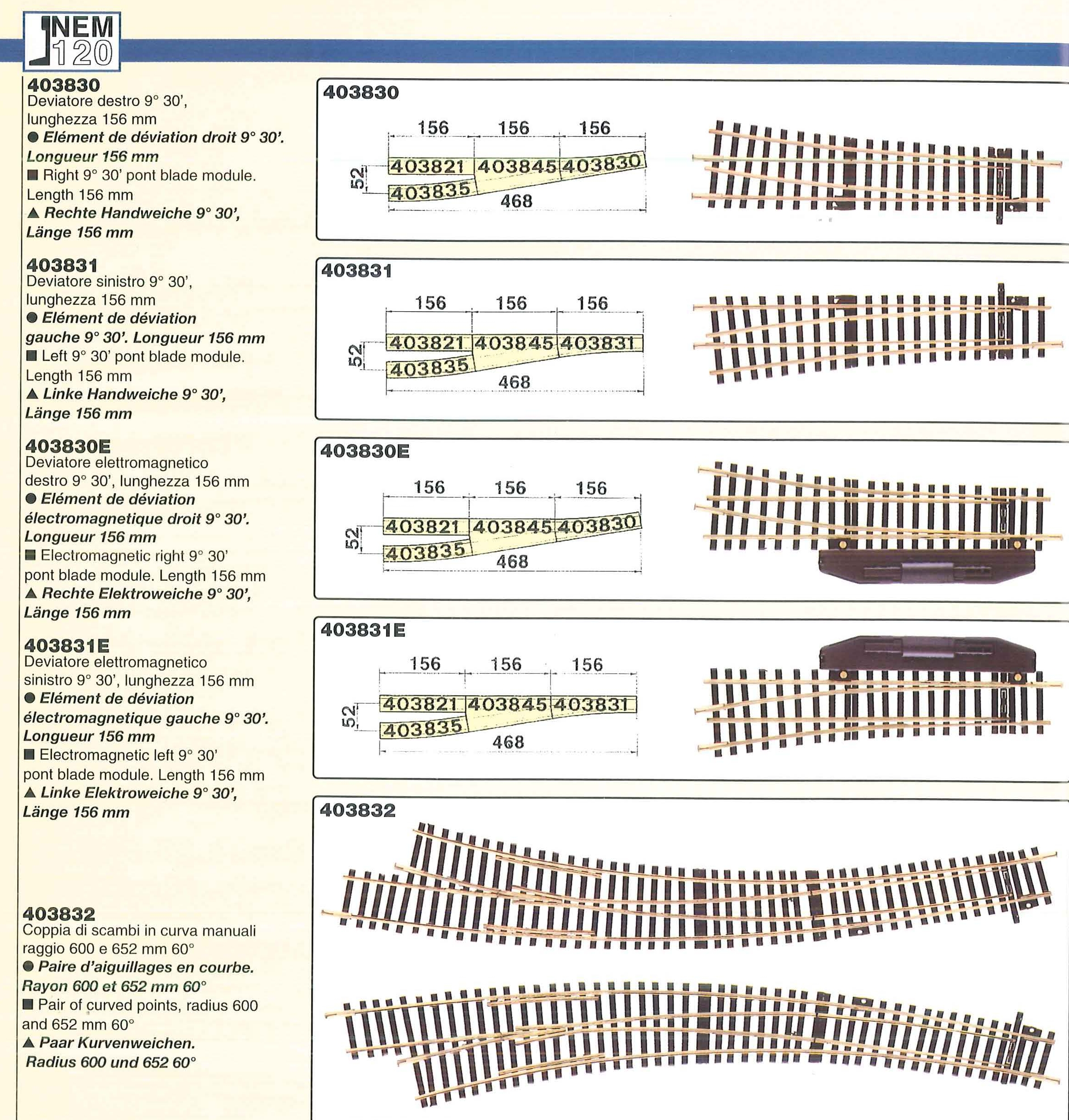 I binari non vengono pił identificati come NEM 120 o Nickel-Silver e cambiano codice: ora 4037xx che ricomprende tutti i binari proposti