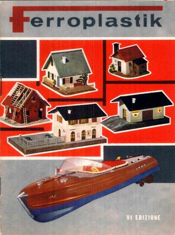 - Il catalogo Ferroplastik Vicenza (presunto 1964) è un pieghevole di sei facciate con cinque edifici italici (da 401 a 405, di cui tre da montare, di produzione Vau-Pe*) e tutti gli altri (da 301 a 317) in stile nordeuropeo marcati Coronet (marchio di cui non ho altre tracce, che vorrebbe nascondere la provenienza Faller degli edifici)