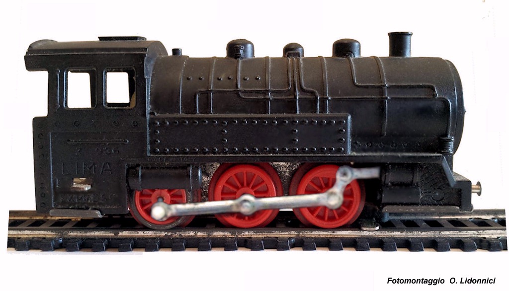 E' stata la prima locomotiva prodotta da Lima, solo in startset. Visibile nel Catalogo a schede mobili del 1957 (presunto). Mai comparsa nei cataloghi specifici per treni elettrici in quanto il primo catalogo è del 1959, mentre questa loco è precedente, sostituita dal 1958/59 dalla seconda versione. Con motore a 4,5 Volt con alimentazione tramite pattino anteriore strisciante. Con ruote in plastica ed equidistanti. Sulla seconda versione le ruote anteriori metalliche prendicorrente erano ravvicinate fra loro. Con o senza tender: dipendeva dall fatto che lo startset ne fosse o meno dotato. Dotata di motore con guscio trasparente venduto anche come articolo singolo.