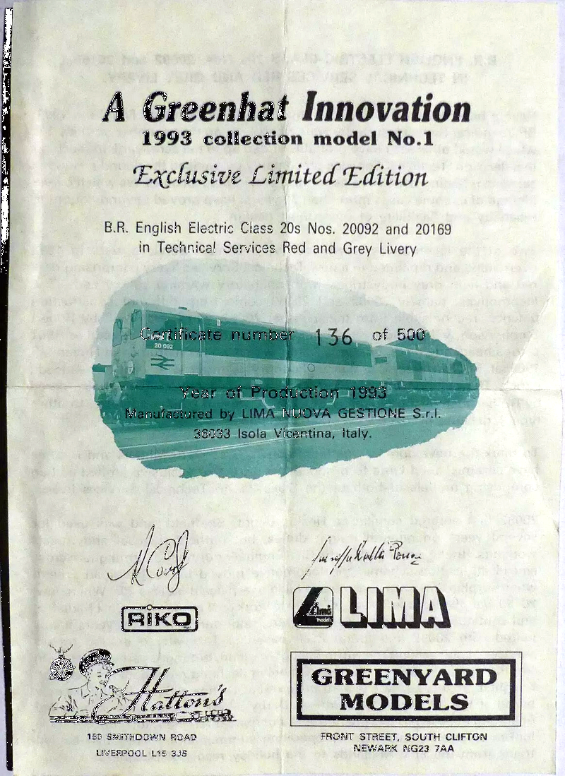 Lima, principalmente negli anni '90 e soprattutto per il mercato inglese, ha prodotto molti modelli in edizioni limitate, serie speciali, ecc. Presumo per negozi importanti e direi riviste. Questi modelli non sono stati riportati sui cataloghi ufficiali In questa pagina cerchiamo di raccogliere quelli trovati in rete. Il Codice è desunto dalle confezioni se presenti, l'anno dall'allegato se presente o presunto (in verde) in base al tipo di confezione.