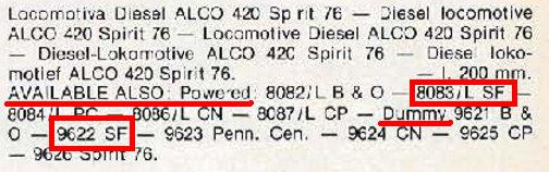 Locomotiva mai rappresentata in catalogo ma citata come disponibile sul catalogo 1975/76