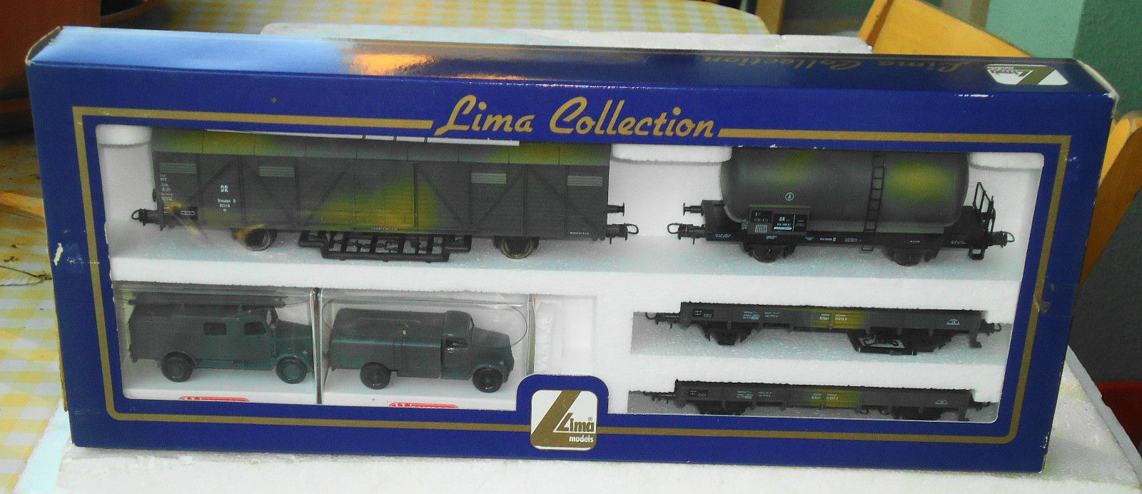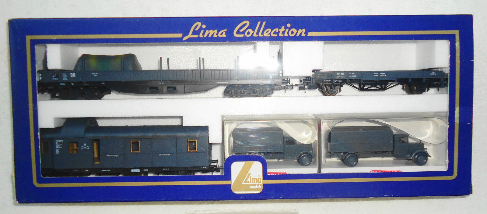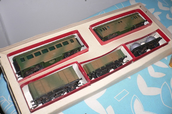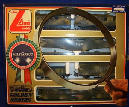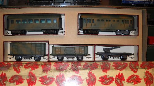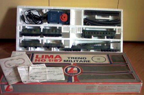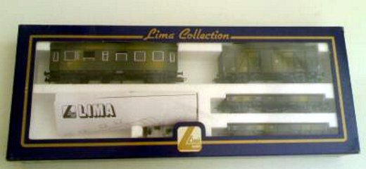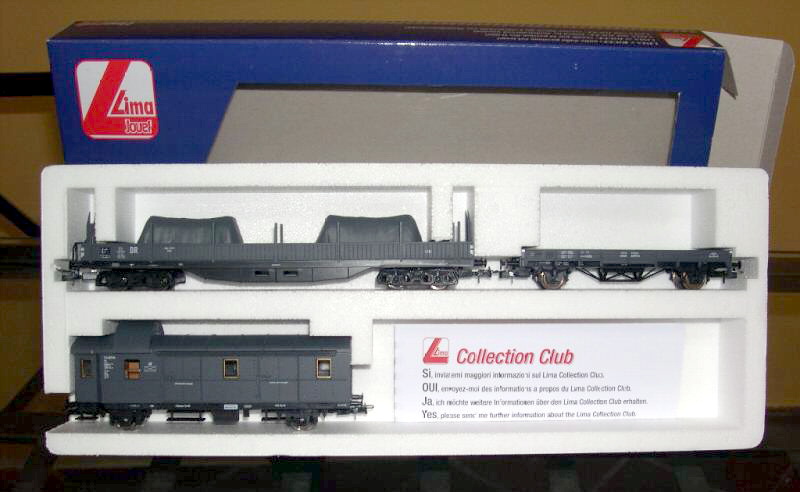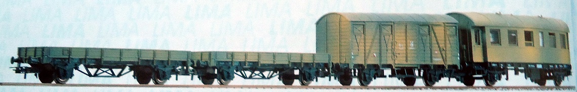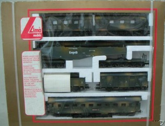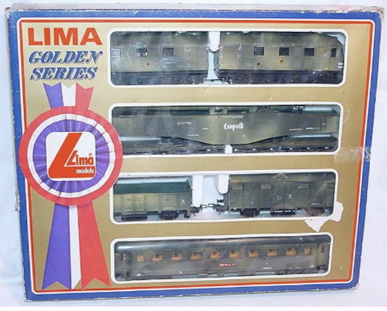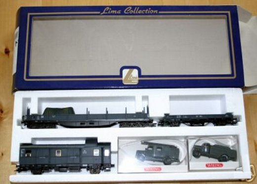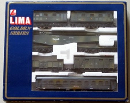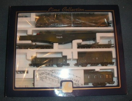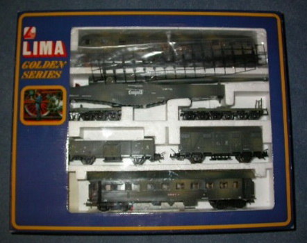 Lima ha proposto un set di soli vagoni già dai primi anni di attività. Ho trovato 2 versioni di tale set: uno con il vagone cannone del primo tipo e uno con quello più recente con le torrette. In entrambi i ganci sono quelli dei modelli dei primi anni. Il contenuto è composto dai vagoni cannone già citati, una carrozza passeggeri del primo tipo, un bagagliaio, un vagone chiuso di tipo F accorciato e un vagone aperto a sponde alte ricavato dal vagone chiuso semplicemente togliendoli la parte superiore. Tutti appaiono in livrea mimetica e sono esposti più dettagliatamente nella apposita sezione perché erano venduti anche singolarmente.