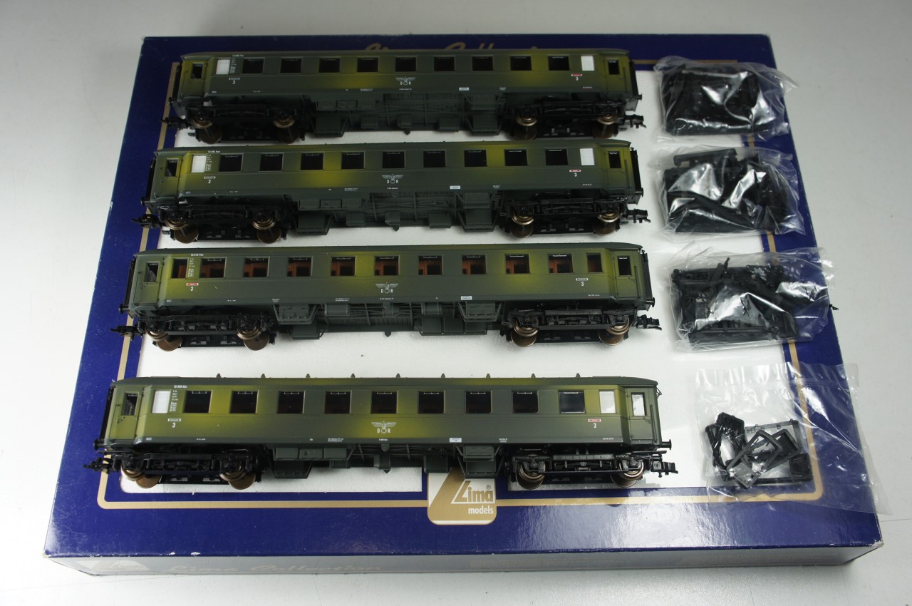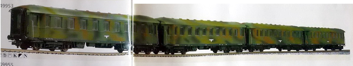 Set di quattro carrozze passeggeri tipo B4Ü 36 mimetiche. Appare sul catalogo del 1999 novità con un prototipo con mimetica diversa dal modello in commercio. Rimarrà in produzione fino al 2004. Set molto bello e di ottima fattura con carrozze molto ben realizzate e piene di aggiuntivi. Una nota curiosa è che il prototipo presenta una mimetica molto simile all’analogo set Liliput. Forse Lima ha preso spunto proprio da quello. La mimetica scelta da Lima però è più plausibile all’epoca di ambientazione delle carrozze ma parlando di modelli entrambi di fantasia la cosa non assume molta importanza.