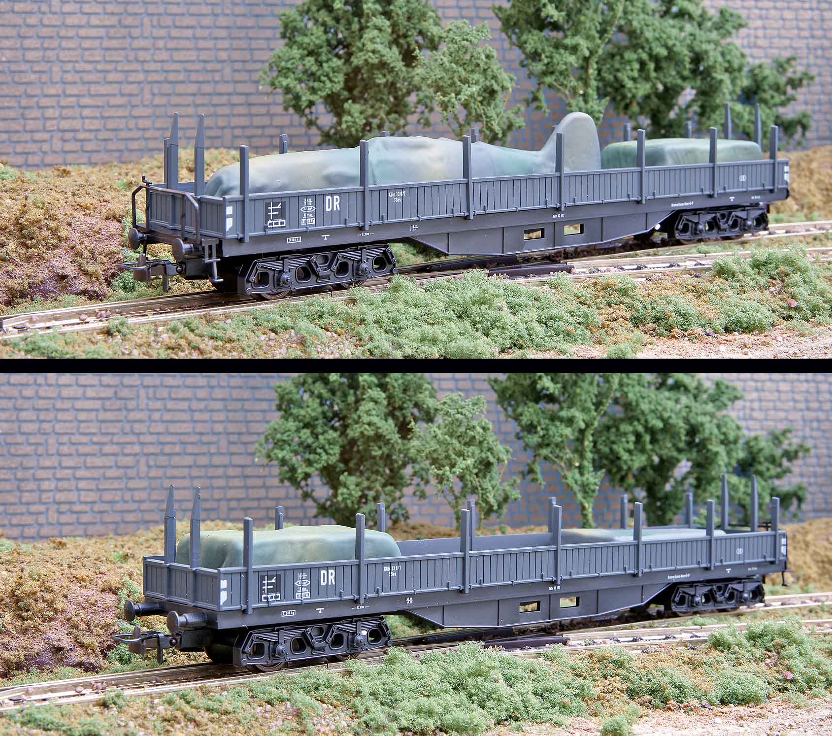 uguale al precedente ma con vagoni chiusi entrambi marroni (qui il carro con le torrette è danneggiato ma si riconosce)