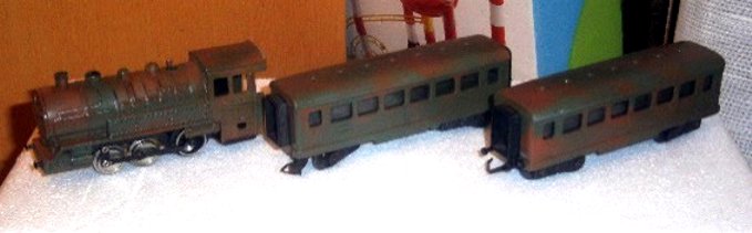 locomotiva Z936, carrozza passeggeri del primo tipo e bagagliaio entrambi mimetici
