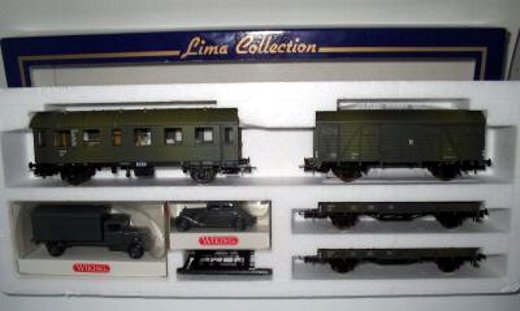 Set militare mimetico con vagone chiuso Glt 19, vagone cisterna tipo Uh, due pianali a sponde basse KLM 505 e nella versione per il mercato tedesco anche con due mezzi Wiking (prodotti esclusivamente per Lima). Un Opel Blitz 1939 Löschwagen e un Opel Blitz 1939 Flugfeld-Kesselwagen. Il set appare per la prima volta sul catalogo 1999 novità e rimane fino al 2004. La versione con i mezzi per il mercato tedesco sembra sia stata prodotta solo nel 1999. Set molto bello e plausibile specialmente la versione con i mezzi.