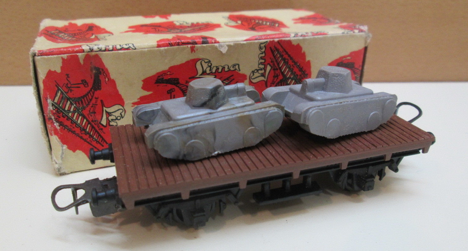 Scala H0 Nel campo militare Lima propone anche dei vagoni specifici e non delle semplici ricoloriture di mezzi civili. Il primo vagone cannone proposto ha caricato un cannone brandeggiabile che veniva caricato anche sui camion della serie Mignon del periodo. Sembra sia stato proposto solo nel 1959 o al massimo fino al 1960. Lo si trova anche nei set militari contemporanei.