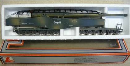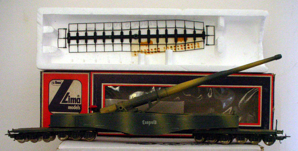 Lima dopo i primi ingenui tentativi propone un bellissimo modello, per l’epoca, di un cannone ferroviario della serie K5 che a uno dei suoi rappresentanti verrà dato il nome Leopold. La prima versione ha la “classica” mimetica Lima e verrà proposta singolarmente e in set dal 1978/79 fino al 2004. Fra le varie livree proposte quelle di cui ho prove della reale esistenza sono quella mimetica giallo sabbia (la mimetica reale del periodo sembra però non aver avuto le macchie marroni) e quella grigia.