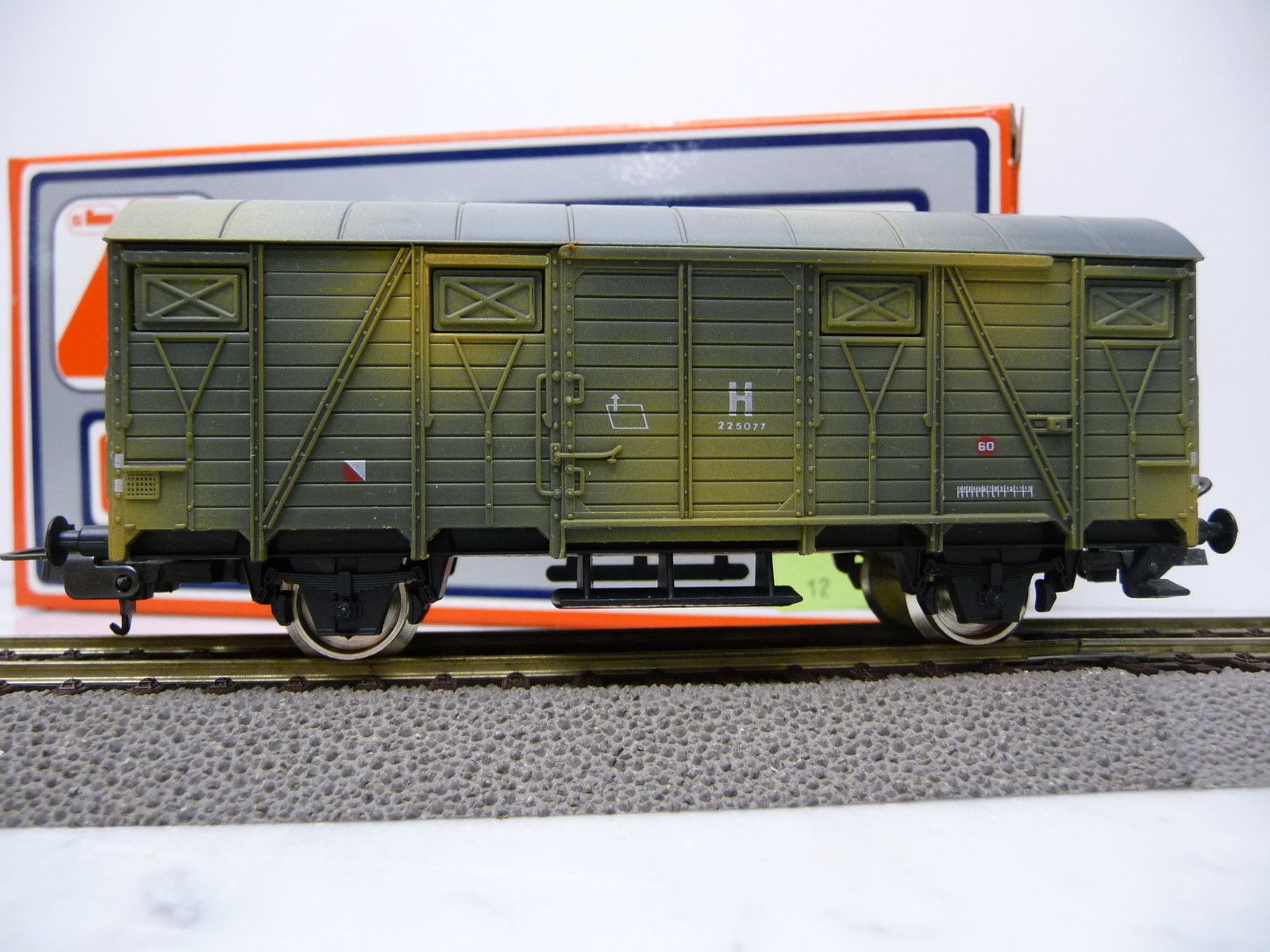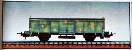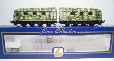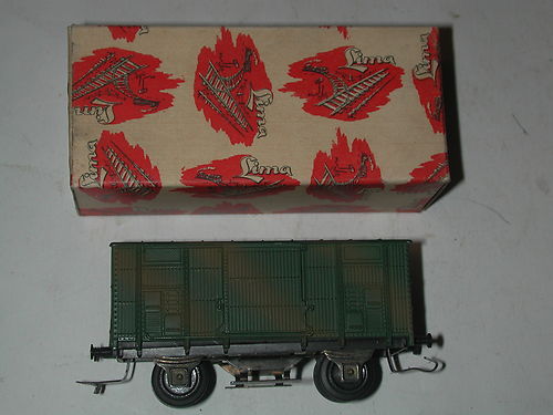 Scala H0 Nei primi anni Lima proponeva modelli militari di vario tipo tra cui anche vagoni chiusi in livrea mimetica. Il primo è un carro chiuso di tipo F accorciato che ritroviamo con i ganci delle prime produzioni e con i ganci ad occhiello. La prima versione è stata prodotta probabilmente solo nel 1959 o al massimo fino al 1960 mentre la seconda dal 1961 al 1963. La prima versione la si trova anche nel set di vagoni del periodo mentre la seconda non ho prove che sia stata inserita in set.