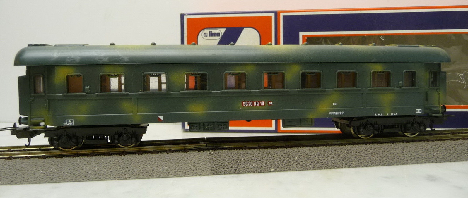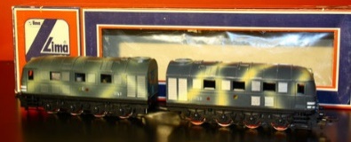 Scala H0 Le prime carrozze passeggeri militari della Lima risalgono al catalogo del 1960. Queste presentano i tipici ganci del periodo e venivano vendute anche in set e confezioni di avvio. I modelli non riproducono nessun mezzo realmente esistito. Queste carrozze venivano verniciate anche in altre livree ed avevano un fine puramente da gioco.