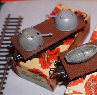 Il modello successivo di vagone cannone propone una versione con torrette girevoli che sorprendentemente (probabilmente senza volerlo) riproduce un vagone simile ad alcuni realmente esistiti in Germania nella 1° guerra mondiale. Viene proposto con i ganci dei primi anni in due versioni, una con torrette grigie e una con le stesse verdi. Esiste anche una versione più recente con i ganci ad occhiello e con il piano nero o marrone. La prima versione viene probabilmente prodotta dal 1960 fino al 1961 mentre la versione con i ganci ad occhiello rimane in catalogo dal 1962 al 1963.