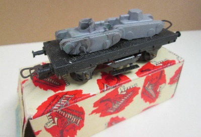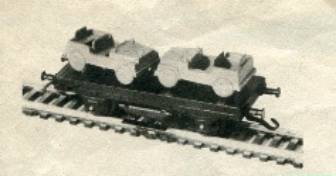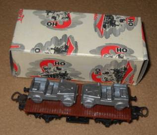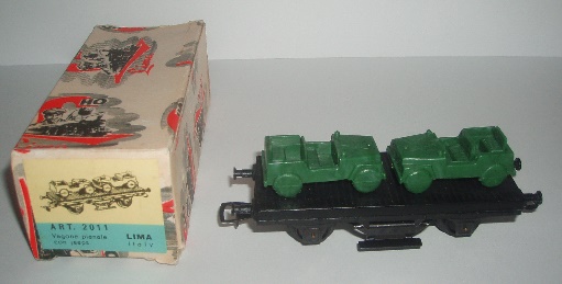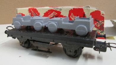 Altri vagoni proposti sono più diffusi e conosciuti come quello con il carico di Jeep Willies in scala troppo grande (forse in 1:72). Le Jeep potevano essere grigie, verdi o argento di solito dello stesso colore se usate come carico ma da una testimonianza di Berto75 sembra che esista almeno un esemplare con una coppia di Jeep una verde e una argento. Ci sono due versioni la prima con un pianale con i ganci delle prime produzioni ma che appare anche con i ganci ad occhiello (forse una versione intermedia) e la seconda con il pianale con i ganci ad occhiello e il piano marrone. La prima versione rimane in produzione dal 1959 al 1960 mantre la seconda dal 1961 al 1963.