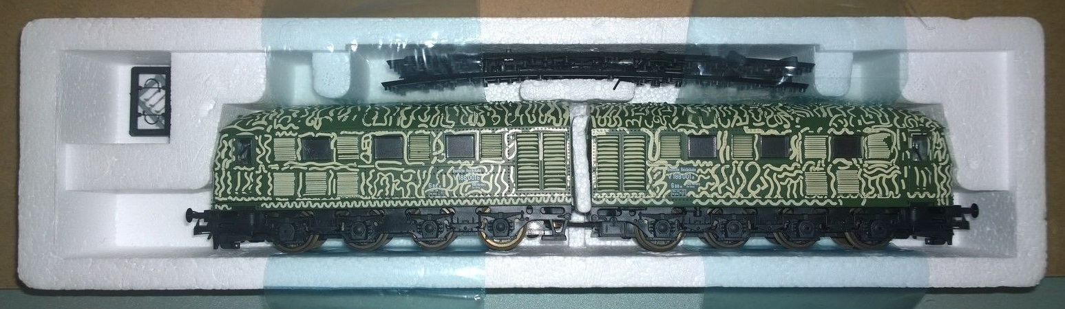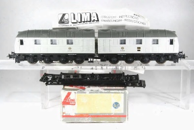 La prima volta che Lima propone una locomotiva in livrea militare sembra che sia con il catalogo del 1978/79 (da una misteriosa foto che mi ha gentilmente reso disponibile Berto75 sembra che sia esistita anche la classica Z936 in livrea mimetica ma di questo modello non ho nessuna notizia). La locomotiva proposta è la V188 realmente utilizzata per il traino di cannoni ferroviari di grosso calibro soprattutto il famoso Dora. La livrea adottata nella realtà non è quella proposta da Lima ma almeno in questo caso il modello non è totalmente di fantasia. Il catalogo illustra un prototipo con mimetica e scritte diverse dal modello entrato poi in produzione. Questo rimarrà nei cataloghi fino al 1990 poi verrà sostituito con uno nuovo di concezione più recente.