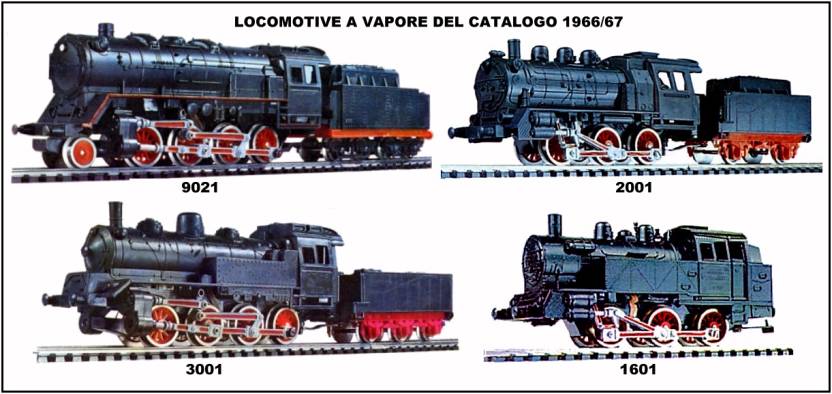 Pietro Merlo (*) Nota: per la “supertrazione” vedi Fig. 26 e commenti inerenti. . . --------------------------------------------------- . La difficoltà nel quantificare il numero esatto delle varianti è causata anche dal fatto che Lima, nei cataloghi, spesso usa gli stessi codici per loco anche molto diverse, che sostituiscono modelli precedenti ed al contrario a volte cambia il codice di una stessa componente inserita in un altro modello. Inoltre nei disegni del catalogo ricambi si notano anche elementi disegnati in modo diverso ma identificati dallo stesso numero di codice. Tutto questo non facilita una corretta ed esauriente ricostruzione storica. . . MOTORI E TRASMISSIONI DELLE LOCOMOTIVE A VAPORE (dal 1965/66) . Sul catalogo del 1965/66 le solite locomotive 2001 e 1601 presentano un inedito biellismo in plastica colorata. Sono inoltre corredate dalla tipica didascalia che ormai conosciamo: “Motore con ottimo funzionamento disposto orizzontalmente” che dimostra la presenza del nuovo motore G. Come al solito Lima presenta modelli totalmente ristrutturati senza dichiararlo apertamente. Nel 1966/67 ormai tutti i telai dei modelli di locomotive a vapore presenti a catalogo: art. 9021, 3001, (oltre alle citate 2001 e 1601) e della diesel 1602*, sono stati riprogettati per ospitare il nuovo motore. La trasmissione, precedentemente a vite senza fine, viene sostituita da una cascata di ingranaggi frontali. Questo comporta il totale rifacimento dei telai ma la trazione continua ad essere limitata ad un singolo asse con ruote gommate. . *nota: la diesel art.1602 non appare in catalogo ma continua ad essere prodotta con lievi modifiche alla carrozzeria (vedi Fig.22) causate dai diversi ingombri del motore G e relegata alle confezioni economiche. . I codici-catalogo degli articoli restano immutati ma in pratica, dei modelli precedenti, viene conservata la sola carrozzeria, dato che anche le ruote ed i falsi biellismi sono rinnovati. .