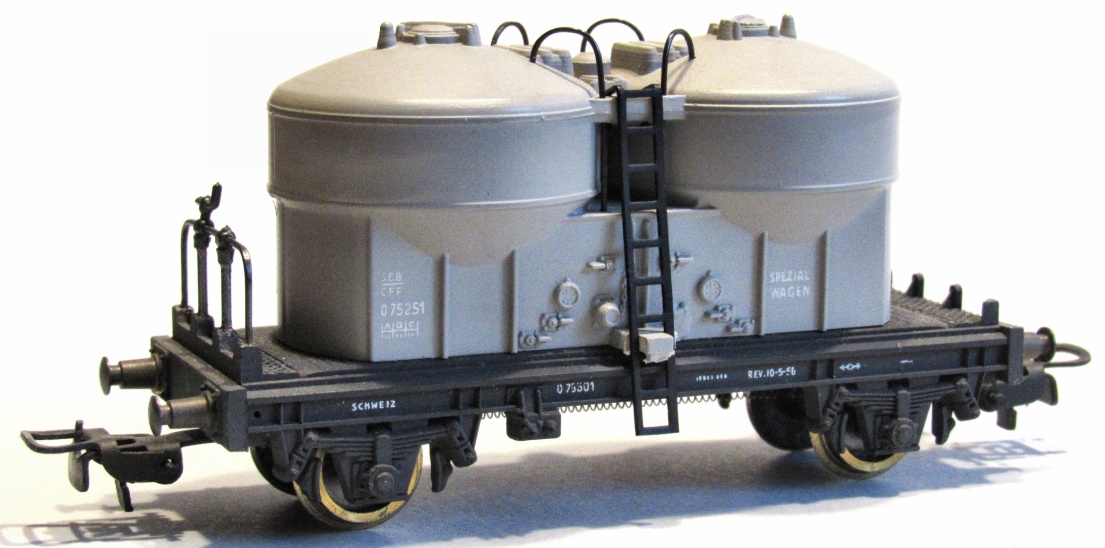 Articolo 311 (1957) – Carro pianale svizzero con carico di due contenitori per cemento