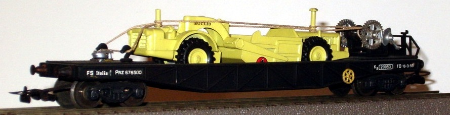 Articolo 403 (1962) – Carro a pianale ribassato FS con carico di scraper Euclid